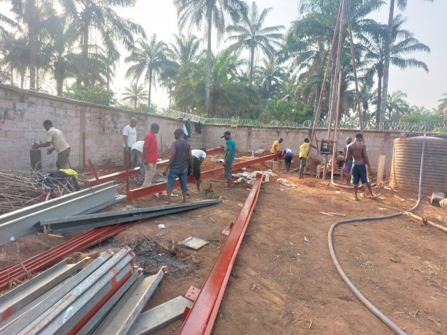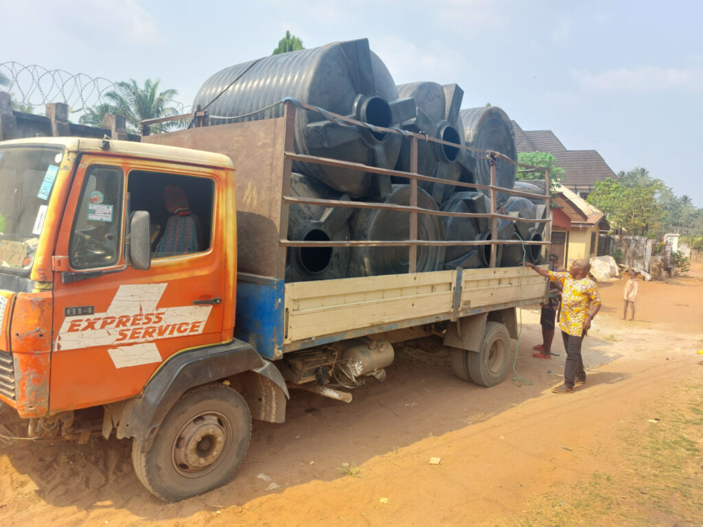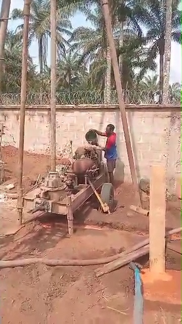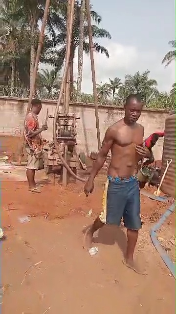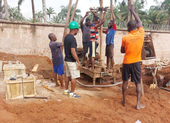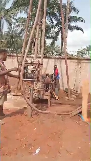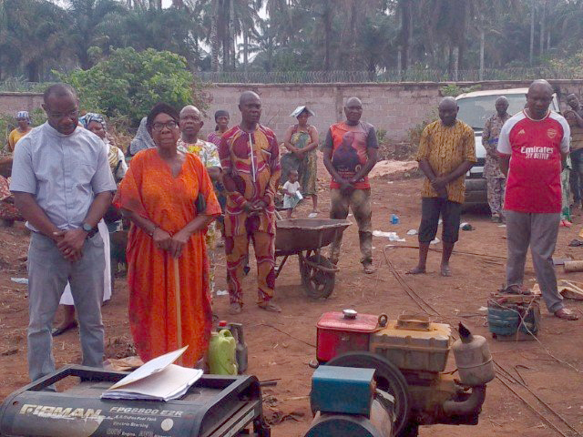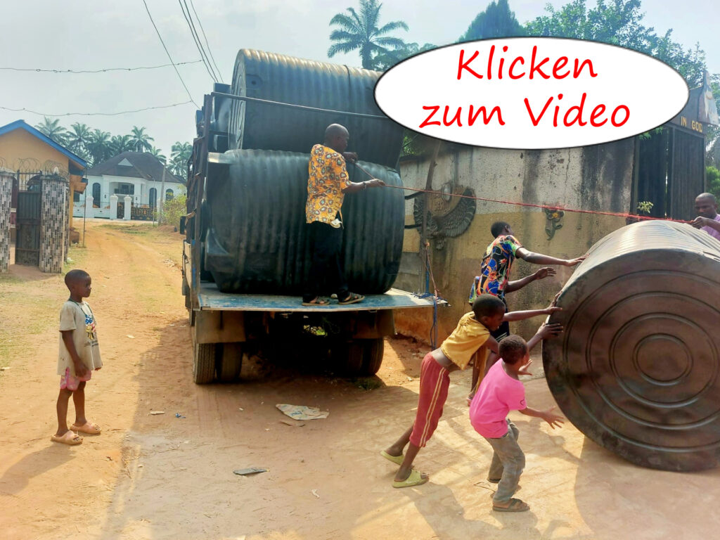 Das Bohrgerät musste vom 120 km entferntem Port Harcourt hergebracht werden. Bei uns denkt man – na ja 3 Stunden fahrt. In Nigeria ist so etwas eine Tagesreise. Die Straßenverhältnisse sind ja ebenso für uns total ungewohnt.