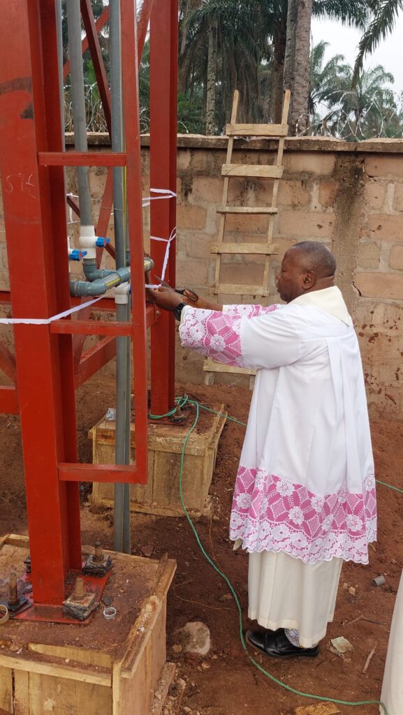 Dank unserer Spender – vor allem auch der Schmitz-Stiftung – konnten wir im Januar 2025 den Brunnen – der Basis von allem ist – fertigstellen und feierlich durch den dortigen Generalvikar einweihen. Das ganze Dorf hat mitgeholfen. Auch die Kinder ließen es sich nehmen kräftig mit anzupacken. So ein Ereignis hatte es noch nie im Dorf gegeben.